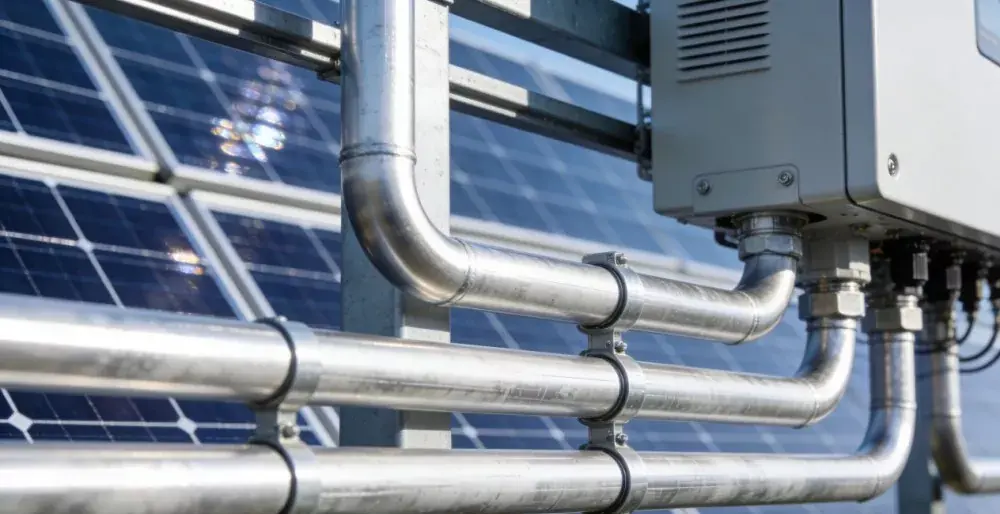 Étude de cas : Un projet de centrale photovoltaïque centralisée à grande échelle a utilisé des tubes en acier galvanisé à chaud φ48 × 3,0 pour fabriquer des supports de modules photovoltaïques, totalisant plus de 800 tonnes. Adaptée aux environnements extérieurs, venteux et sableux, la couche de zinc résiste efficacement aux rayons ultraviolets et à l'érosion éolienne et sablonneuse, assurant ainsi la durée de vie des supports et la stabilité d'installation des modules photovoltaïques.