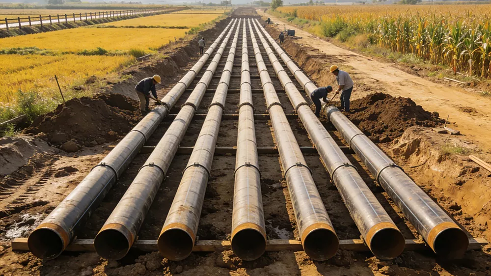 Exigences du projet : Un pipeline principal de dérivation d'eau à grande échelle est nécessaire pour réaliser un transport d'eau claire à grande échelle, adapté aux scénarios de traversée de rivières et de pose de terres agricoles. Le matériau du tuyau doit être non toxique, résistant à la corrosion, avoir un grand diamètre et un diamètre nominal de DN2000. Des matériaux de tuyaux personnalisés de 18 m de longueur standard sont nécessaires pour réduire le nombre d'interfaces et améliorer l'efficacité de la construction.