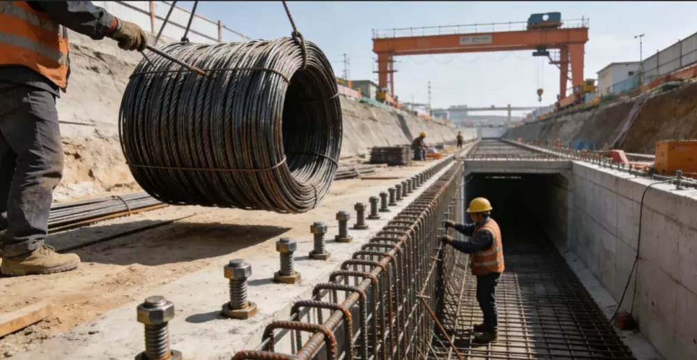 Cas typique : Un projet de galerie de tuyaux du gouvernement dans une certaine ville de Tianjin, bobine d'acier à haute résistance HRB500 personnalisée (diamètre 10 mm), limite d'élasticité ≥ 500 MPa, résistance à la traction ≥ 630 MPa, répondant aux exigences d'utilisation à long terme de la galerie de tuyaux dans un environnement humide souterrain. Après emballage et transport étanches, il est traité et renforcé avec des boulons pré-encastrés, avec un dosage de 190 tonnes, améliorant efficacement la résistance aux fissures et la capacité portante de la structure de la galerie de tuyaux, répondant aux normes d'acceptation d'ingénierie municipales et assurant le fonctionnement sûr de la galerie de tuyaux.