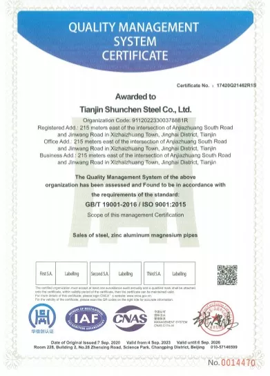 S'appuyant sur les ressources de la base industrielle sidérurgique de Tianjin, la production de masse garantit un approvisionnement en temps opportun. La surface du produit est exempte d'oxydation et de rouille, avec une forte cohérence de qualité et une capacité d'approvisionnement stable exceptionnelle. En choisissant Shunchen Industrial, vous pouvez bénéficier de services d'approvisionnement à guichet unique intégrant la production et les ventes, avec un soutien suffisant fourni par 10 000 yuans de liquidation.