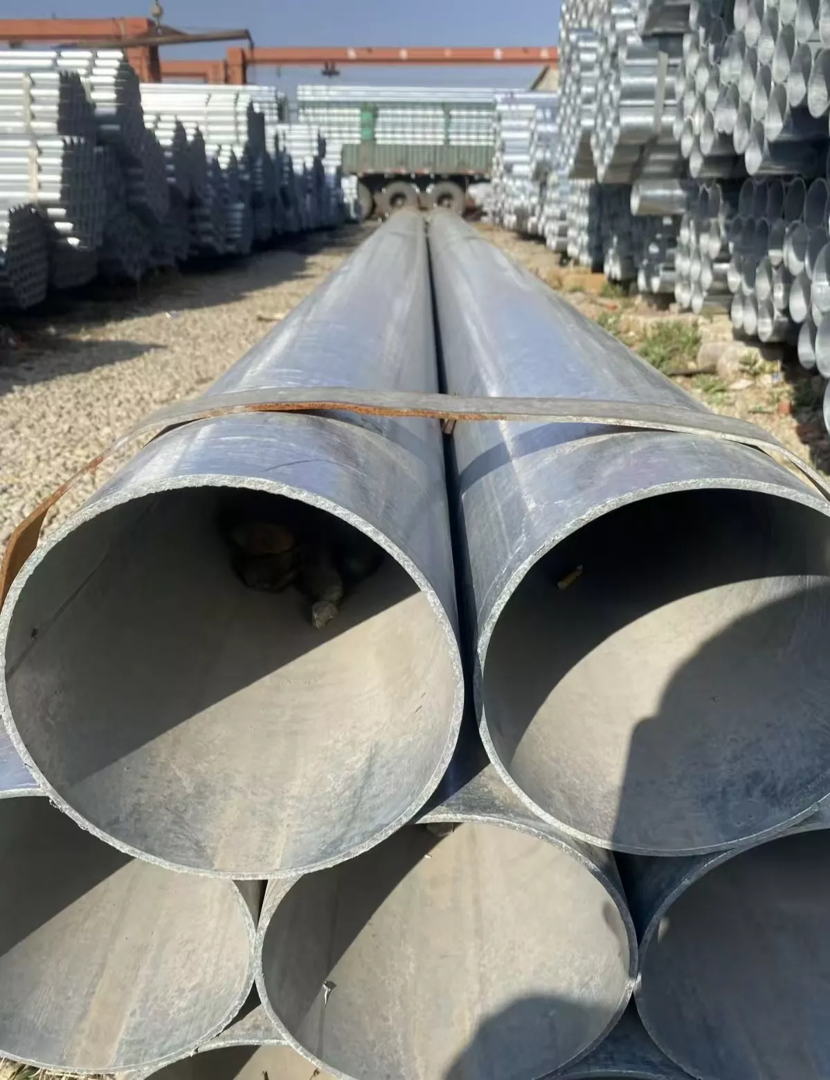 En termes de sélection des matériaux, des tuyaux soudés SAW de haute qualité tels que Q235B/Q345B/X70 sont utilisés. Des procédés avancés de soudage à l'arc submergé double face et de galvanisation à chaud anticorrosion sont utilisés. Le processus de production implique trois processus de passivation pour améliorer la résistance du produit galvanisé à la corrosion alcaline, ce qui donne lieu à des soudures denses et à haute résistance. Chaque produit fini est séché, inspecté et finement réparé avant emballage et expédition. Une large gamme de spécifications est disponible, avec 236 spécifications produites. La personnalisation de tuyaux de grand diamètre et à parois épaisses est également prise en charge.